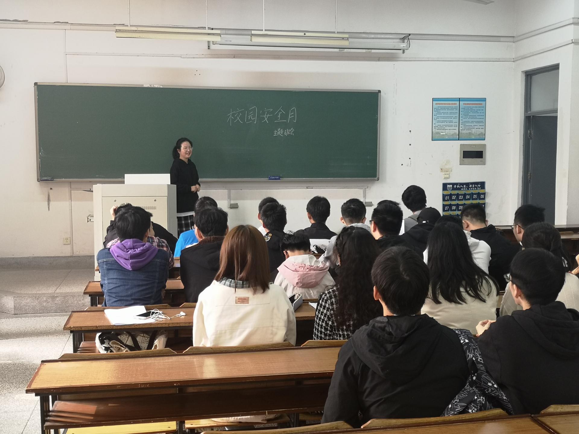 在主题班会开展过程中,各年级辅导员以PPT及板书的形式,分门别类地为班级同学介绍了校园安全所包括的各项具体内容,让同学们对校园安全具备整体性认知。借助图片、视频等多种视听手段,以校园内发生的身边真实案例、校园外发生的社会典型案例,提出校园安全各方面可能存在与实际存在的诸多隐患、隐忧和风险,让同学们获得更加直观的感受和警醒。同时,还设置了互动交流环节,由若干同学组成小组,探讨分析学校中存在的校园安全隐患问题,各小组选派代表上台交流发言。
